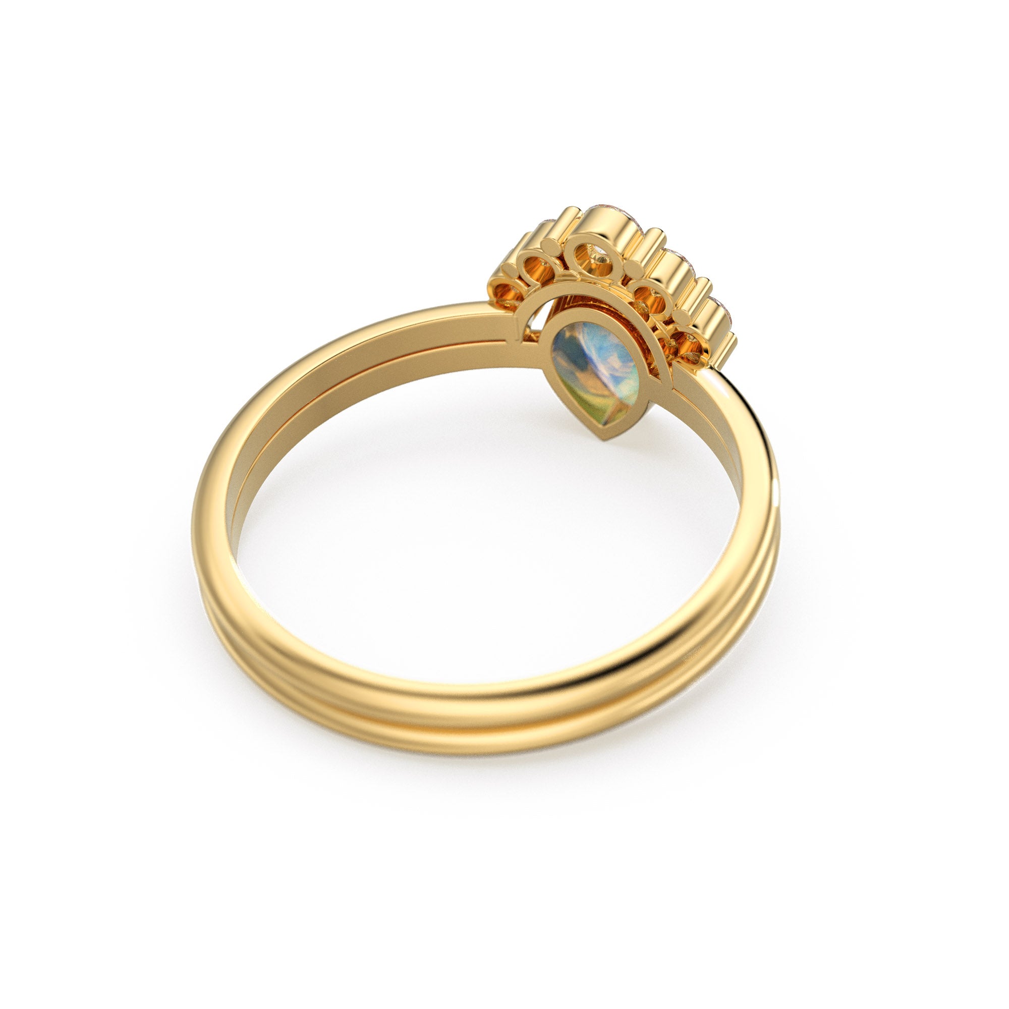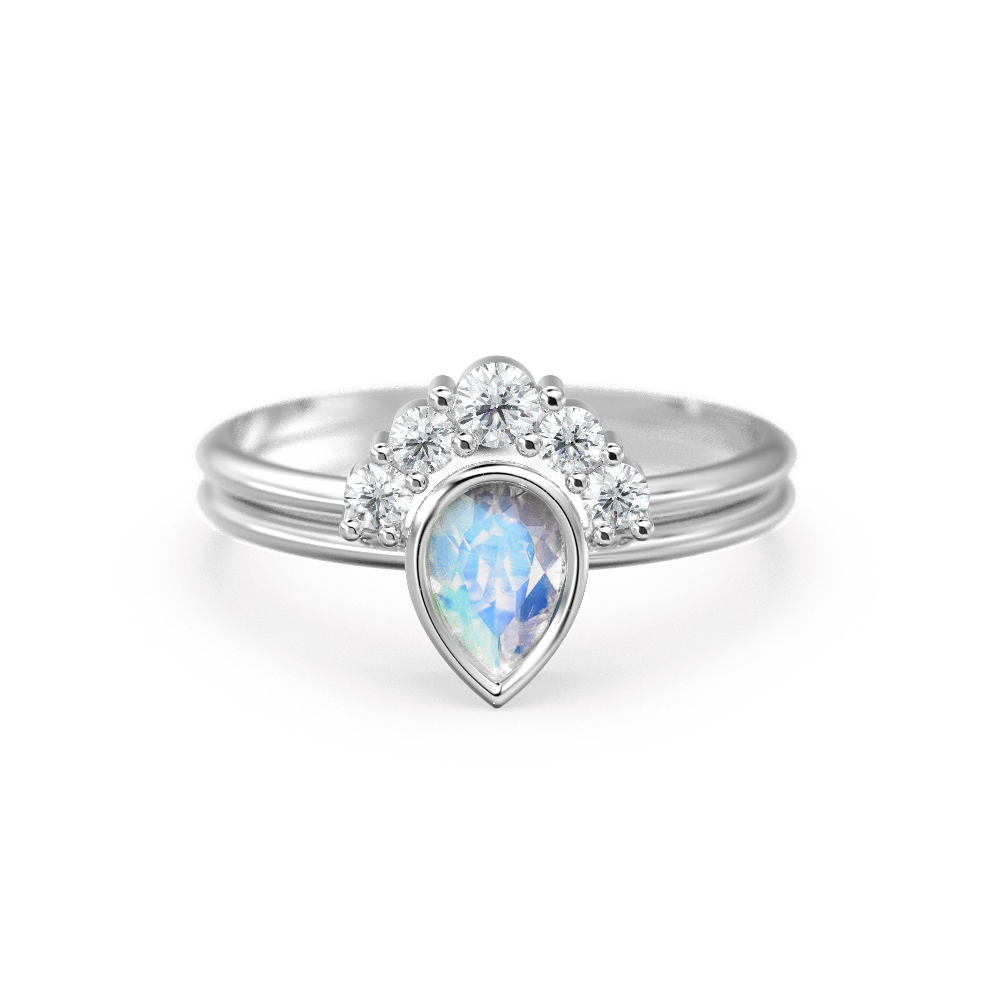 Pear Moonsotne Ring Set, Lab Diamond Crown Ring with Moonstone Solitaire Ring, Moonstone Diamond Ring Set, simple Ring Set