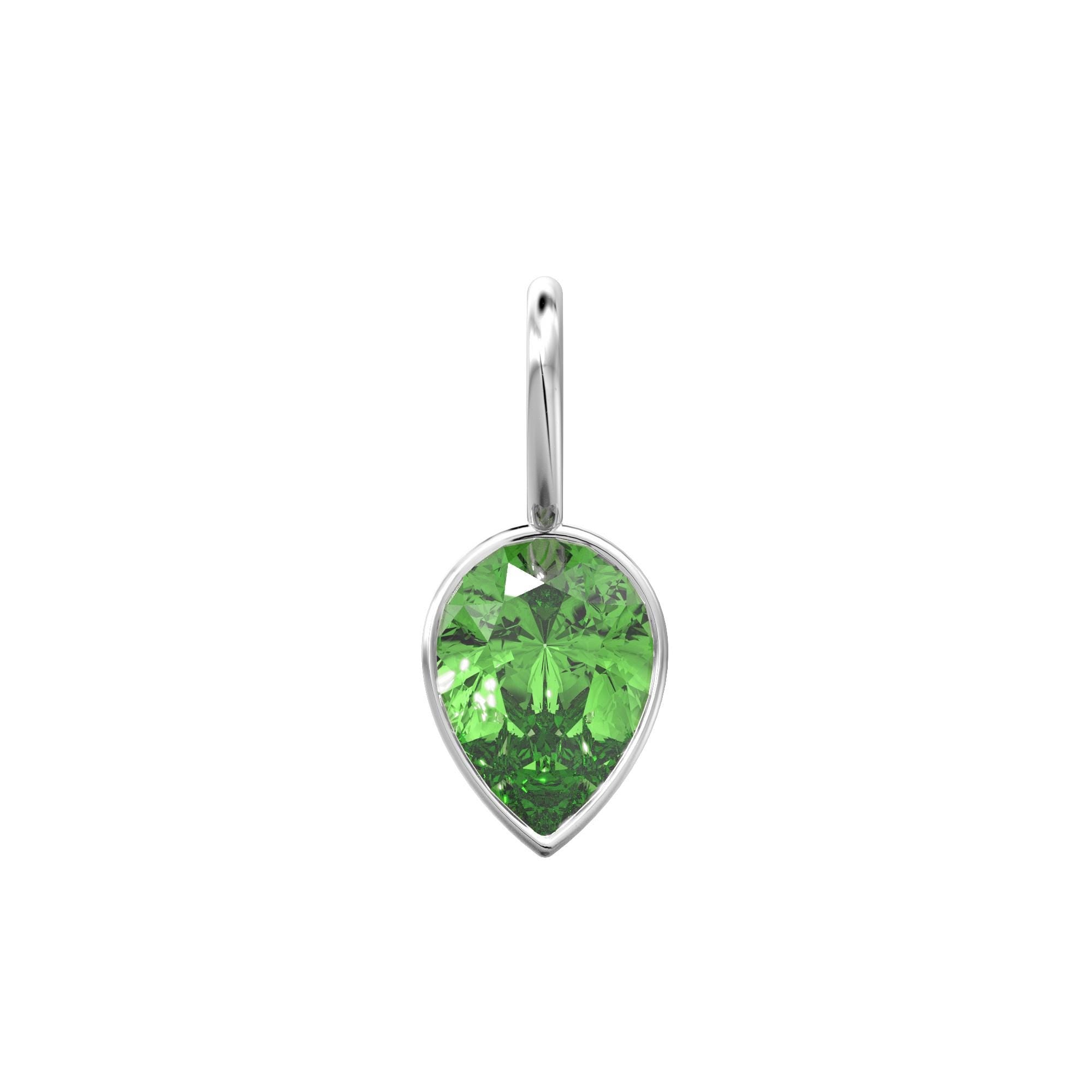 Peridot 14k Yellow Solid Gold Charm Pendant Bezel Jewelry Finding / Prasiolite August Birthstone / 7mm Green Gemstone / Pear Cut Jewelry