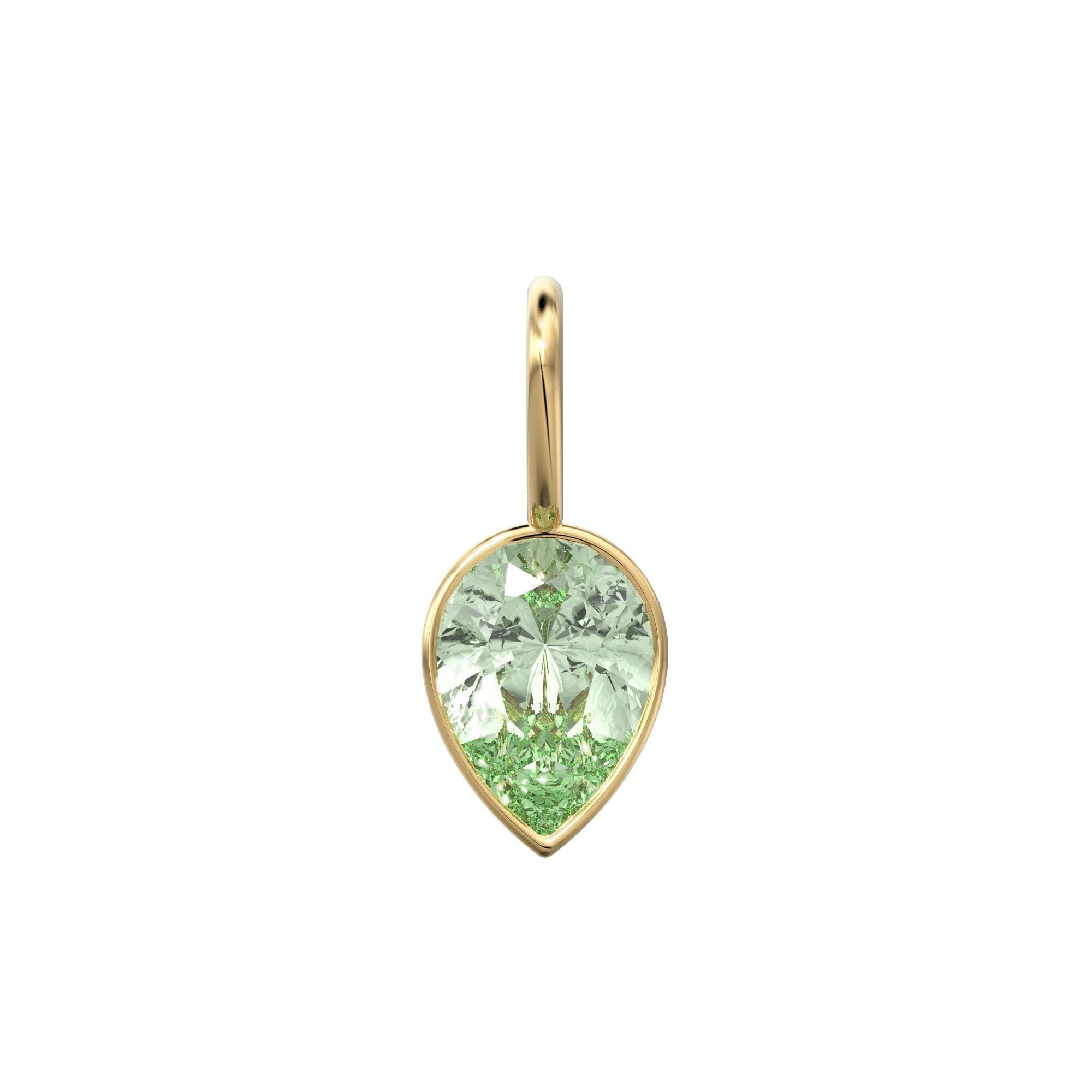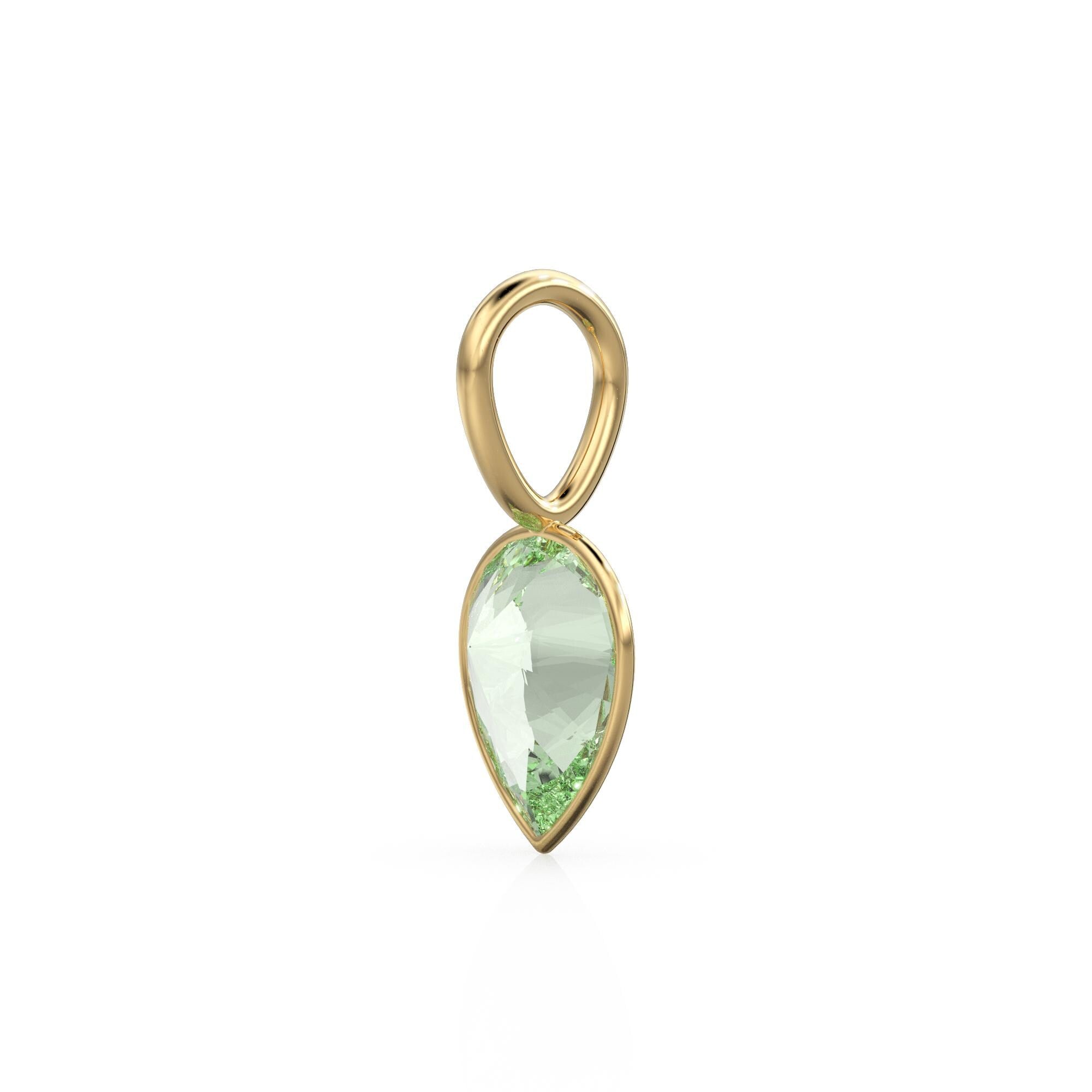 Prasiolite 14k Yellow Solid Gold Charm Pendant Bezel Jewelry Finding / August Birthstone / 7mm Green Amethyst Gemstone / Pear Cut Jewelry
