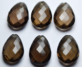1 Match Pair, Half Drill, Natural Smoky Quartz Faceted Pear Briolettes Calibrated Size 13X18mm