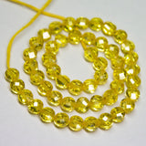 10 inches, 5mm, Yellow Zircon Faceted Coin Briolette Beads Strand, Zircon Beads