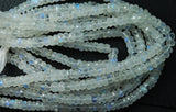10 Inches, Super Finest Blue Flash Rainbow Moonstone Faceted Rondelles Size 6-6.5mm