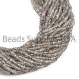 13" Full Strand, Natural AA Grade Black Rutilated Quartz Faceted Rondelle Gemstone Beads, 3.50-4.50mm, 33cm long