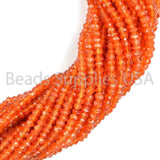 14" Full Strand, Carnelian Faceted Rondelle Shape Gemstone Beads, Carnelian Beads, 2.5-3mm