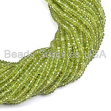 14" Full Strand, Natural AA Grade Green Peridot Faceted Rondelle Gemstone Beads, 3.50-4.50mm, 35cm long