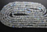 14 Inches Strand, Finest Quality Aaa Blue Flashy Rainbow Moonstone Square Heishi Cut Beads, 4mm Large...