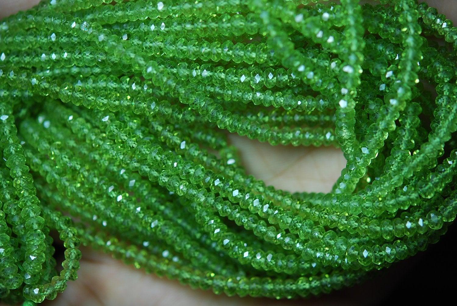 14 Inches Strand Green Peridot Faceted Rondelles Large Size 5mm