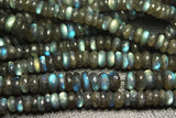 16 Inches Super Finest Natural Blue Flashy Labradorite Faceted Rondelles 9-10mm Aprx
