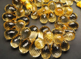 214 Carats, 8 Inches Strand, Natural Citrine Micro Faceted Drops Shape Briolettes, 10-12mm Long,