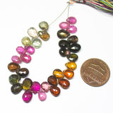 4" Natural Watermelon Tourmaline Faceted Pear Drop Briolette Loose Gemstone Beads 7-8mm