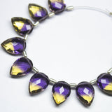 5 Matched Pair, 14mm, Bi Ametrine Quartz Faceted Pear Drop Shape Briolettes, Bottom Side Drilled, Quartz Beads