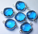 925 Sterling Silver,Sky Blue Quartz Faceted Cushion Shape Pendent, 2 Piece Of 19mm Approx