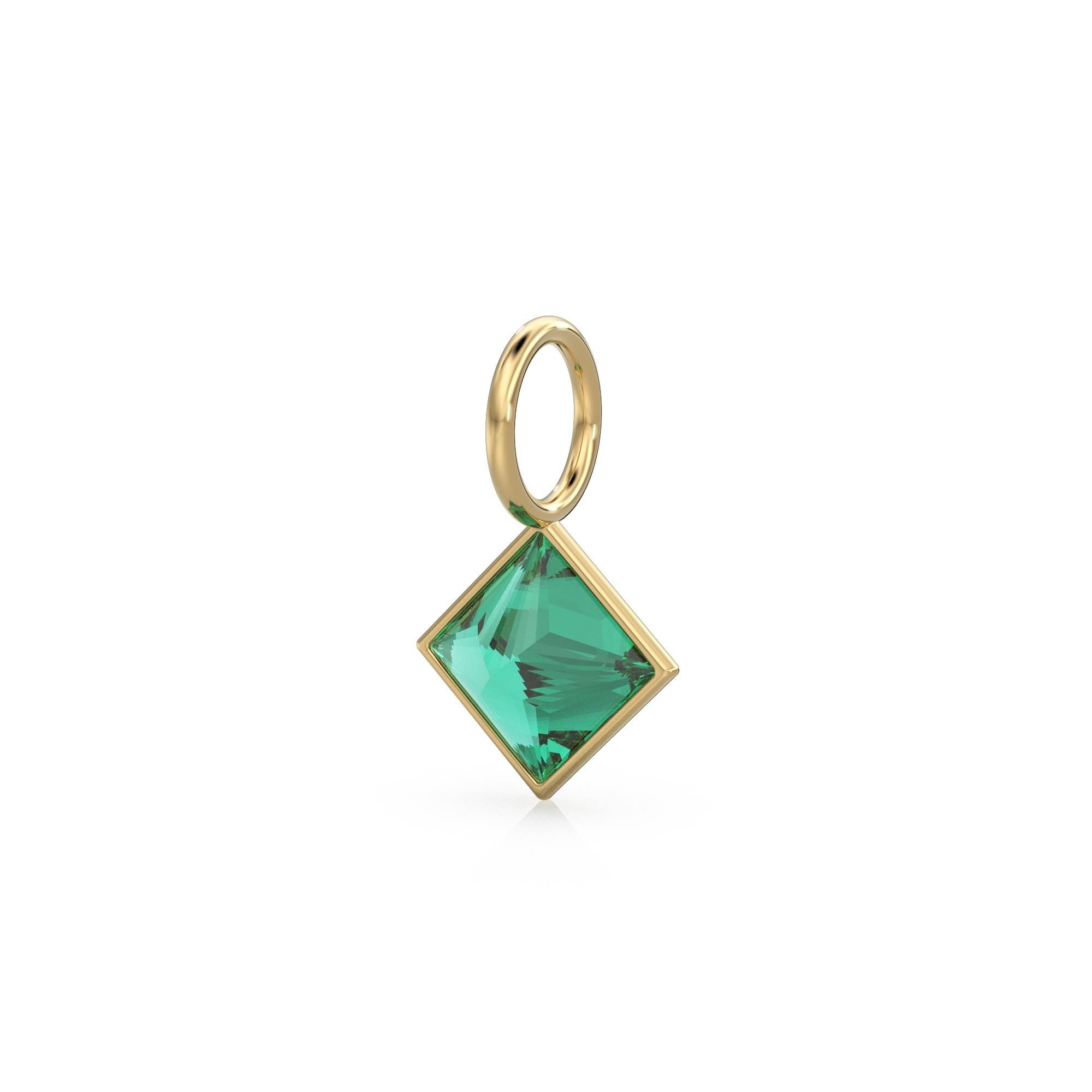 Zambian Emerald 5mm 14k Yellow Solid Gold Charm Pendant Bezel Jewelry Finding / May Birthstone / Princess Cut Green Gemstone / Valentines