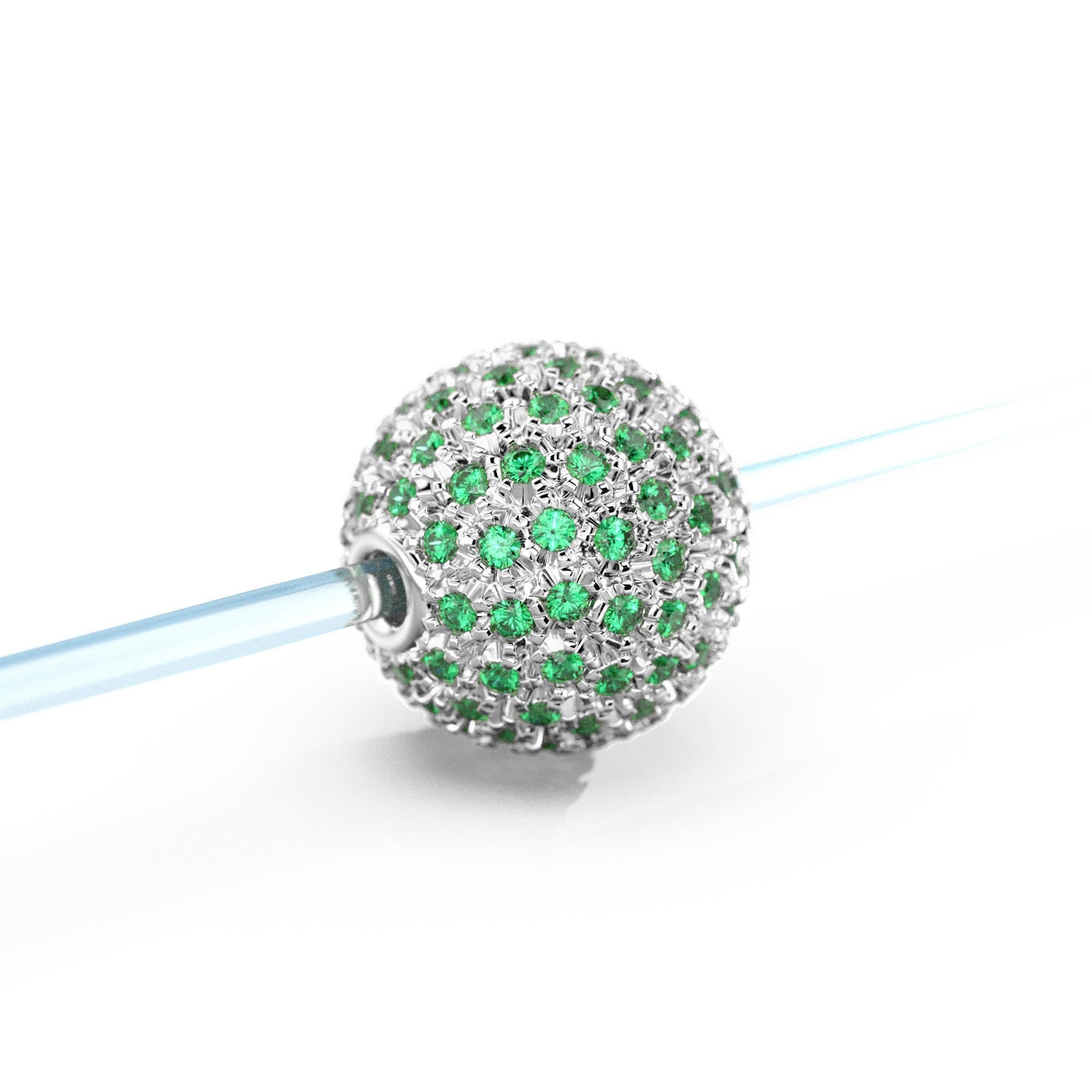 Zambian Emerald French Pave Ball Spacer Bead / 18k Solid Gold Bead / Birthstone May Charm Necklace / 10mm Spacer Finding