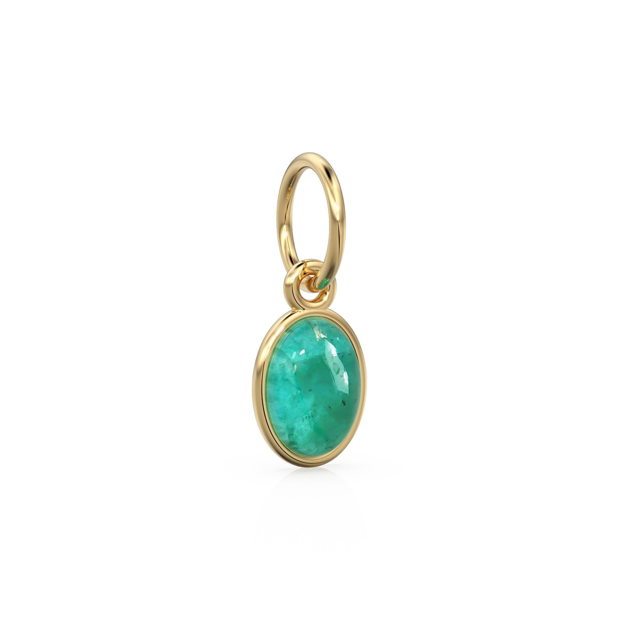 Zambian Emerald Oval Cabochon Solid Gold Charm / Green Gemstone Handmade Gold Pendant / 1pc 14k...