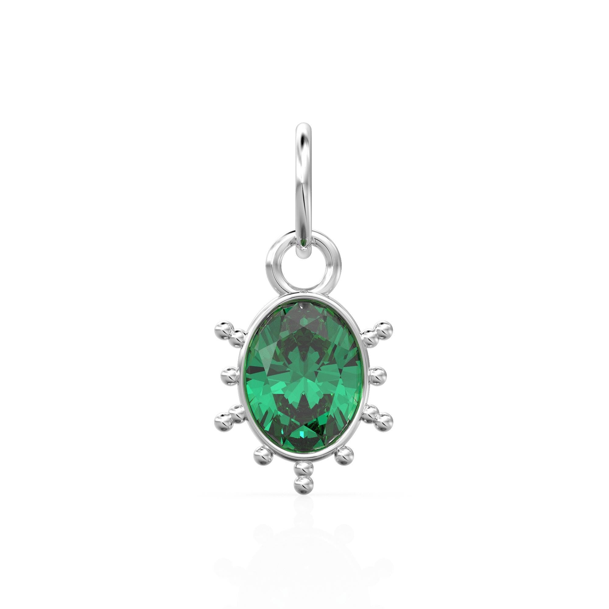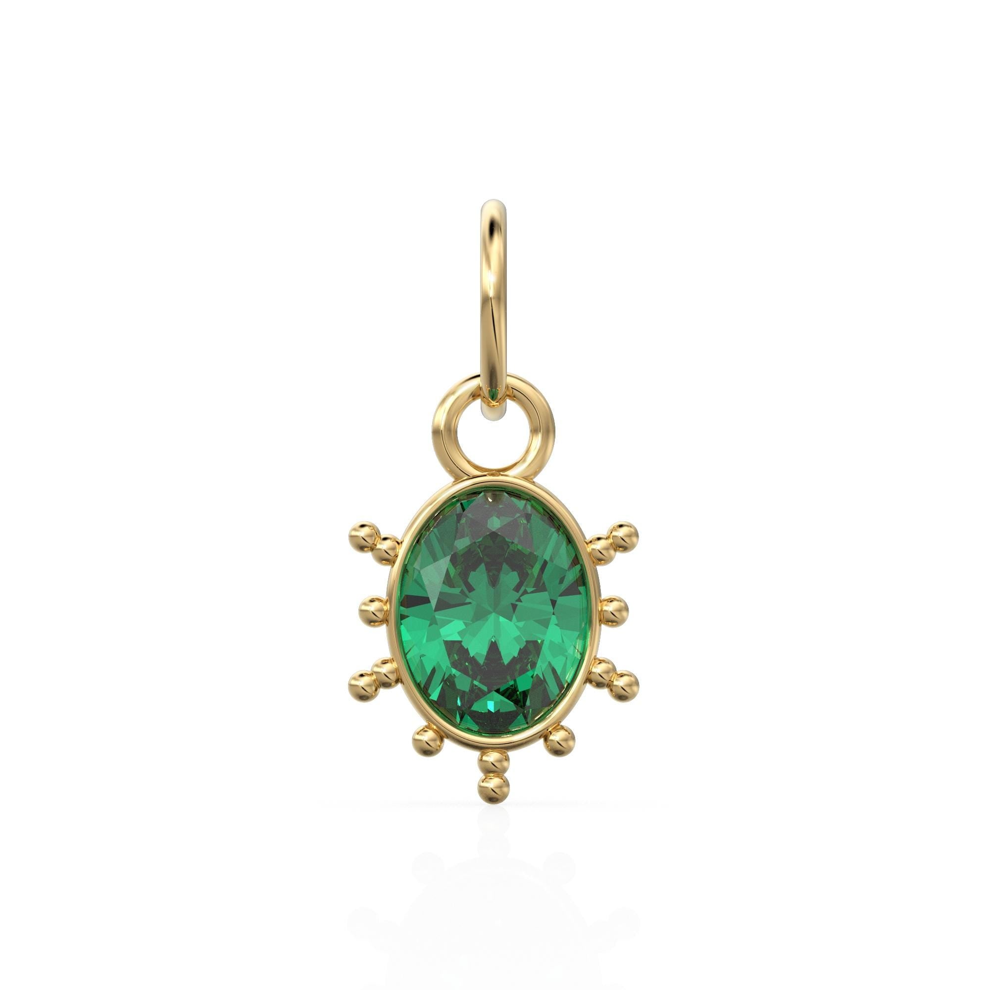 Zambian Emerald Oval Tribal Solid Gold Charm / Green Gemstone Handmade Gold Pendant / 1pc 14k...